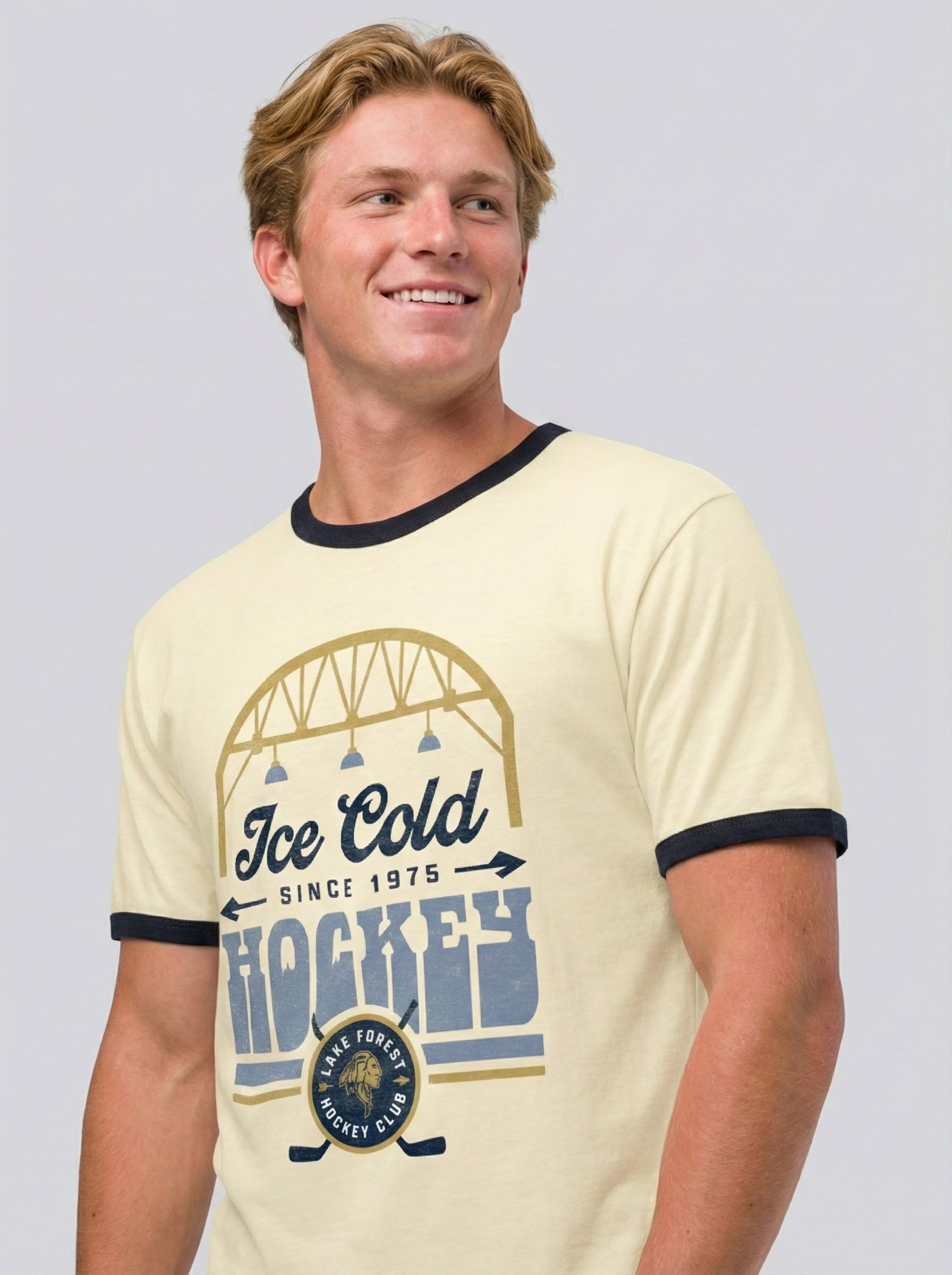 A lightweight ringer tee with a throwback hockey graphic and contrast trims that give it a clean retro look. Soft cotton, easy fit, and an old-school design that stands out without trying too hard.
